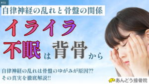 では、具体的に骨格の歪みがどのような症状を引き起こすのか、代表的な「イライラ」と「不眠」にフォーカスして解説します。