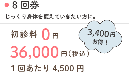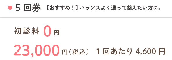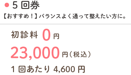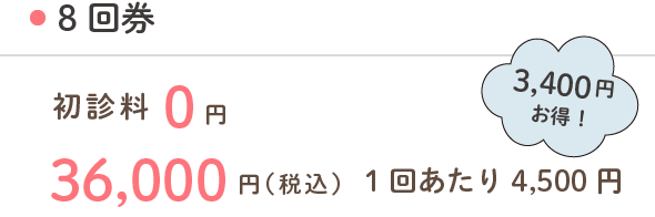 初回から回数券をご購入いただくと、初診料(1,000円)が無料となり大変お得です。
